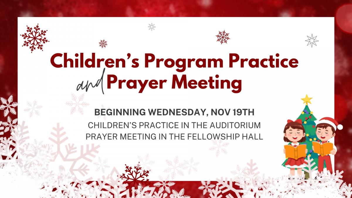 Beginning Nov 19th, the children will be practicing in the auditorium and prayer meeting will be in the fellowship hall.
