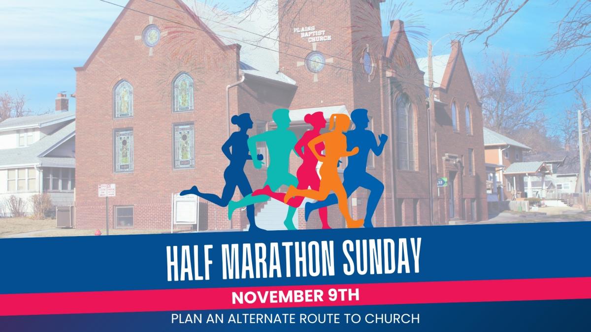 Expect traffic delays. Click here to see the race map to plan your route to church. Runners will be near the church starting around 9:00am with the last runner around 11:15pm.